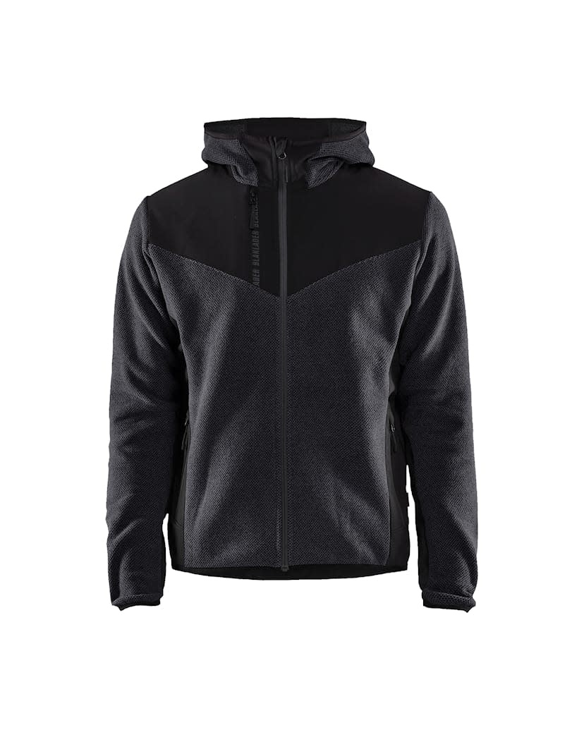 Veste polaire tricotée gris foncé et noire