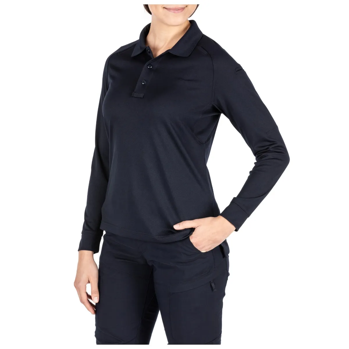 Polo Performance à manches longues pour femme, bleu marine foncé