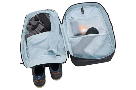 - Separate work and personal gear: Separate compartments store electronics and work items away from personal gear
