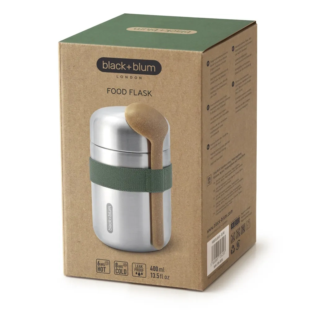 We have updated our best-selling Food Flask by adding a stainless-steel underside to the lid meaning that food has no contact with any plastic. The ladle spoon now includes sustainably sourced wood fibre and the product is now packaged in a gift box. The flask is vacuum sealed to keep food hot for up to 6hrs and cold for up to 8hrs.